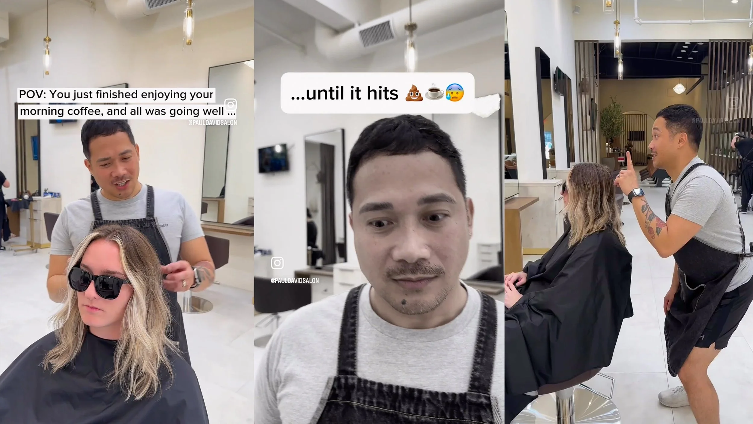 Every stylists’ worst nightmare, being with a client then the morning coffee hits.